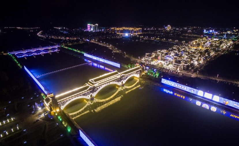 此次改造在兼顧傳統(tǒng)藝術(shù)性與創(chuàng)新技術(shù)性的協(xié)調(diào)與平衡的前提下,結(jié)合北川當(dāng)?shù)氐奈幕睾徒ㄖ攸c,確定以新縣城景觀帶為橫軸、安昌河沿岸為縱軸,兩軸燈光與金融街建筑帶形成具有韻律感的梯次分布為脈絡(luò)展開北川新縣城的城市亮化。