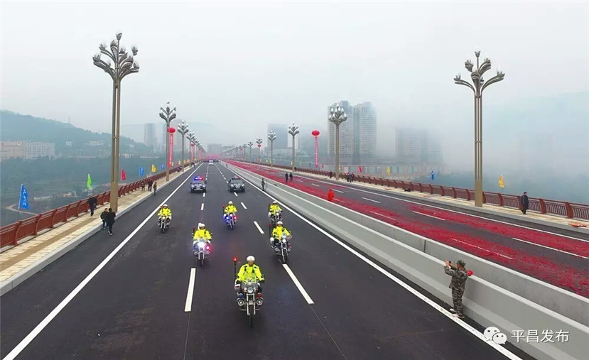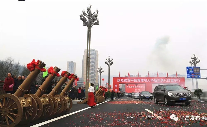 2017年1月16日,巴中平昌迎來盛大而隆重的黃灘壩大橋通車典禮。修建于2013年的平昌縣黃灘壩大橋,長936米、寬33米、雙向六車道連續(xù)T梁鋼構(gòu)橋梁一座,概算總投資3.4億元。該橋既是鐵路平昌站連通巴達高速公路和縣城繞城路的樞紐工程,又是連接老城和新區(qū)的便捷通道,功能特殊,意義重大。