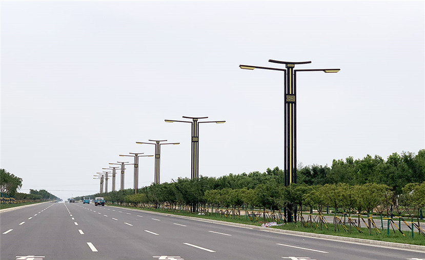 同時,頂部裝飾和路燈燈頭一起,又組成一個“千”字,寓意“千年古都”之意,也蘊(yùn)含建設(shè)者功績“千秋萬代”。