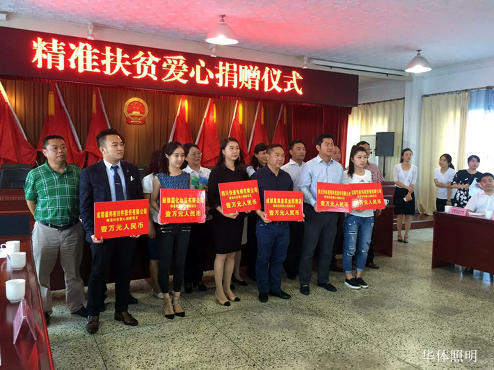 2016年5月20日上午,雙流區(qū)(公興)“精準扶貧愛心捐贈”儀式在公興街道辦事處舉行,區(qū)委常委、統(tǒng)戰(zhàn)部部長、總工會主席蔣莉,區(qū)委統(tǒng)戰(zhàn)部常務副部長潘萬春,區(qū)委統(tǒng)戰(zhàn)部副部長、區(qū)工商聯(lián)黨組書記杜小娟等領導出席儀式。四川華體照明科技股份有限公司董事長兼總裁梁熹受邀參加捐贈活動。據(jù)悉,此次捐贈活動共籌集善款32萬元,區(qū)紅十字會將設立專門賬戶進行管理,確保精準放款。