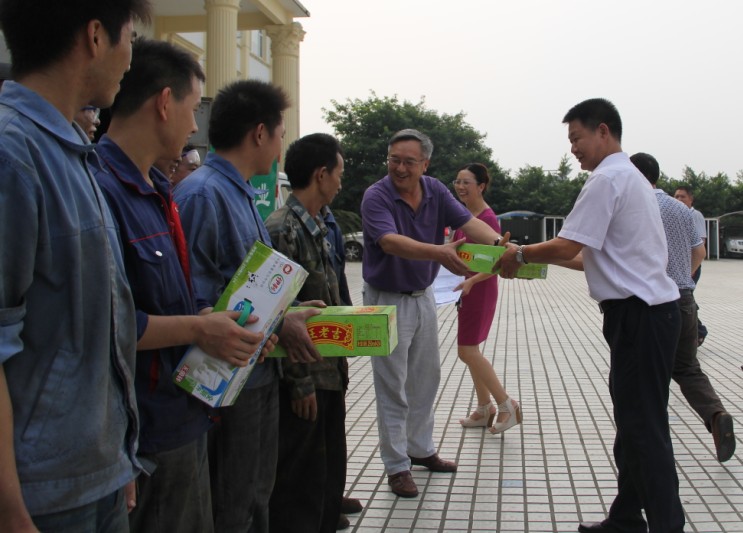 8月5日,雙流縣總工會(huì)余主席一行帶著80件牛奶、80件王老吉等清涼飲品和降暑藥物來(lái)到華體,向工作在一線的華體職工表示慰問(wèn)。公司常務(wù)副總裁向宗叔陪同慰問(wèn)。