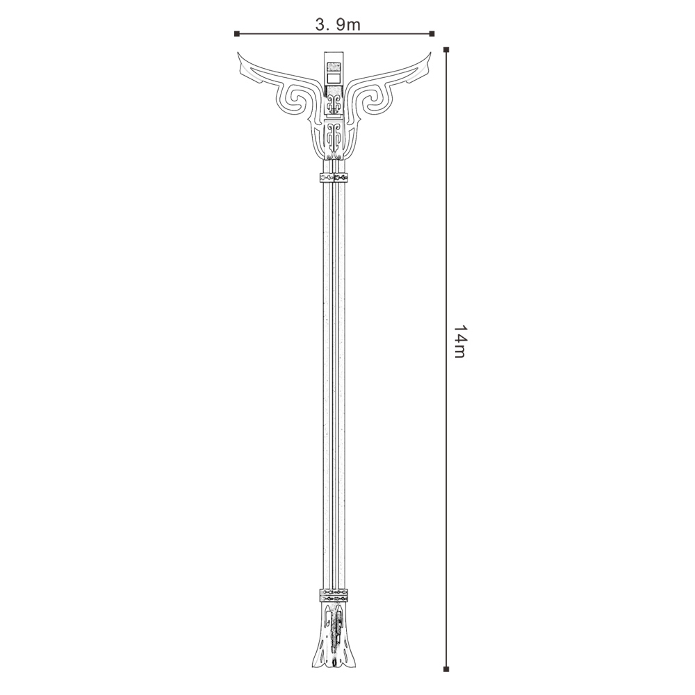 燈型主體、桿體、底座材質(zhì)為金屬鋼件表面熱鍍噴塑,可配光源LED/鈉燈。