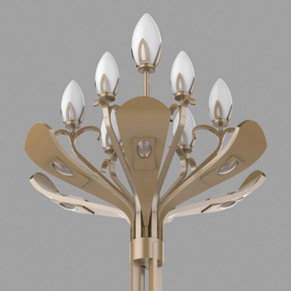 燈型主體以含笑花的元素進(jìn)行造型,燈體底座以抽象的蓮花形態(tài)相結(jié)合,是將地域佛文化在燈具上加載運(yùn)用的體現(xiàn),強(qiáng)化了兩種“佛性”文化,濃縮了地域特色;