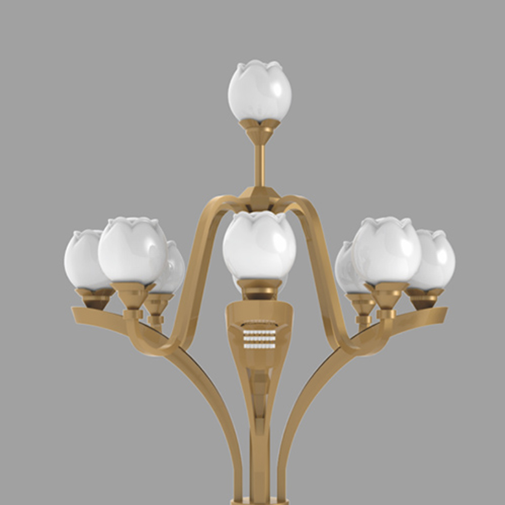 中華燈是一款極具中國特色,外觀大方的多等頭燈具。芙蓉中華燈是在傳統(tǒng)中華燈的基礎(chǔ)上進(jìn)行了改良,保留其神韻,切加入新的元素,巧妙的運用花瓣的形式,實現(xiàn)了燈桿與燈頭的實體連接;