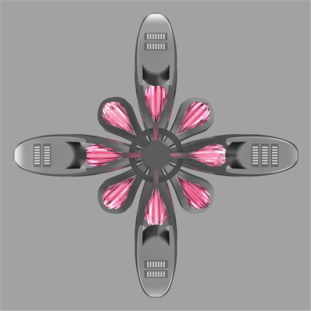 采用山茶花作為設(shè)計(jì)元素,燈桿設(shè)計(jì)成四桿花瓶狀,打破常規(guī)燈桿單一的樣式,主體分為功能照明和裝飾照明兩個(gè)部分,分別對(duì)應(yīng)的是山茶花的葉子、花瓣和花蕾,彩色的裝飾玻罩白天具備一定景觀性,和道路綠化景觀的“四季有花賞”的設(shè)計(jì)策略相融合,夜晚呈現(xiàn)山茶花盛世開放的亮麗景致。