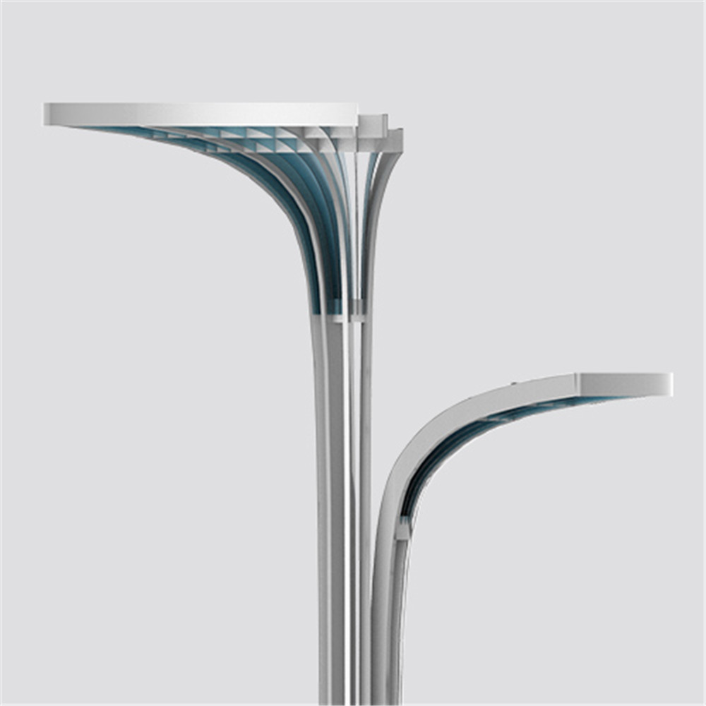 燈桿采用鏤空式結(jié)構(gòu),突破了傳統(tǒng)實體燈桿造型,更具現(xiàn)代感和工業(yè)感,整體造型簡潔大氣。