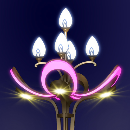 下方安裝了主光源,與兩側(cè)燈臂處燈光融為一體,交錯(cuò)互映,熠熠生輝。